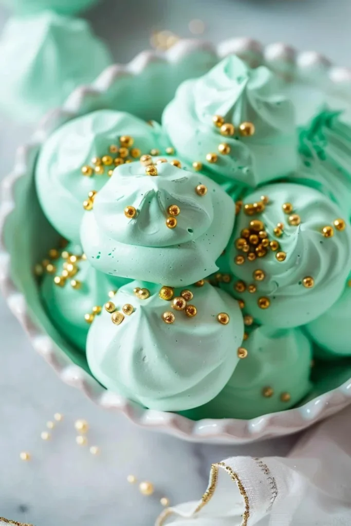 For inspiration and variations, check out this festive take on green meringues at Green and Gold St. Patrick’s Day Meringues – Whispered Inspirations, a seasonal roundup at What I’m Making (This Holiday Season) – Olivia Noceda, and another classic spin with tips at Green Meringue Cookies Recipe | Tastes of Lizzy T.